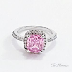 Anel Quadradinho Light Pink Cristal Cravejado em Prata 925