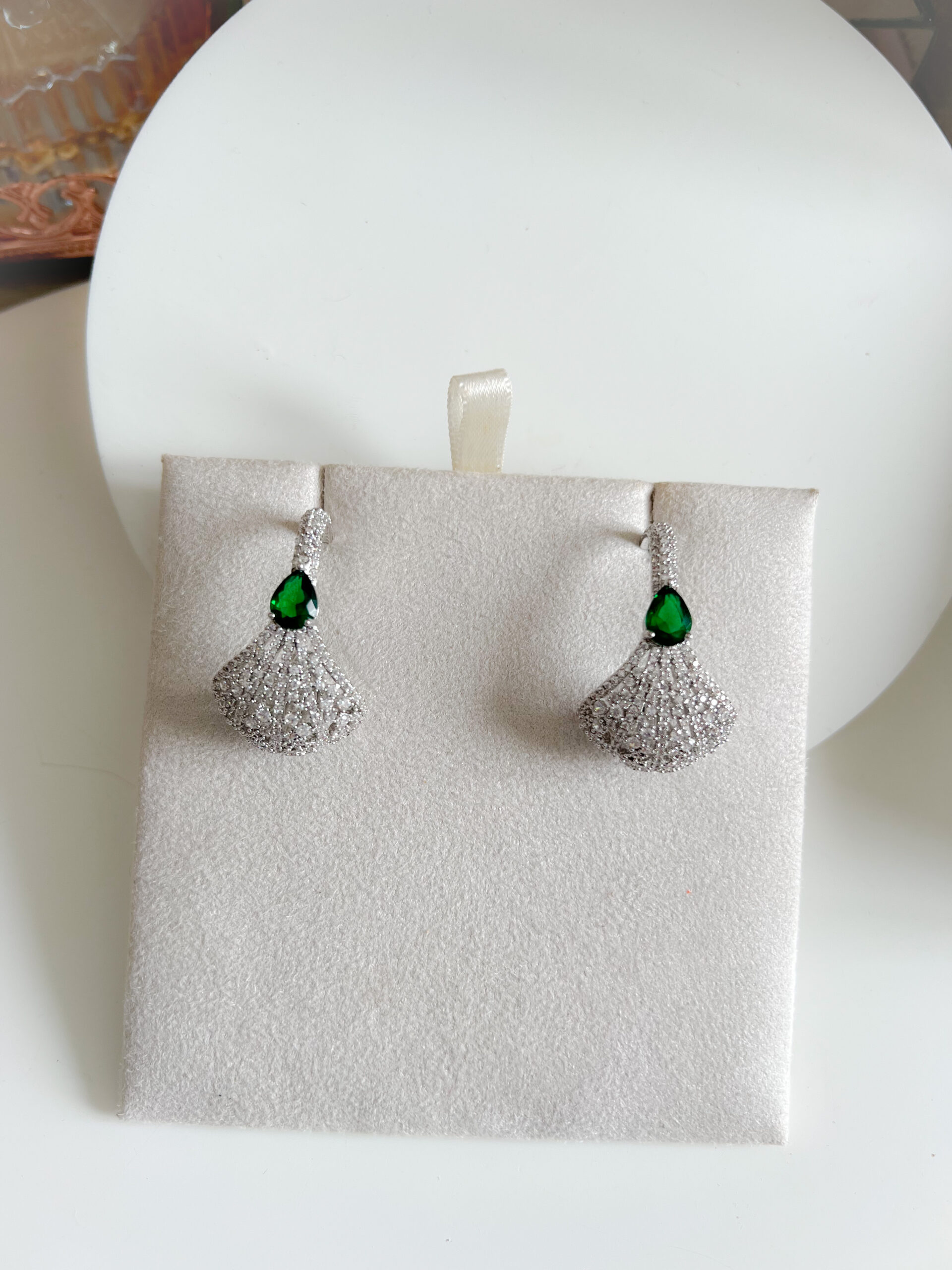 Brinco Curvado Cravejdo de zirconias brancas com Gotinha Cristal Esmeralda Banhado em Ródio Branco