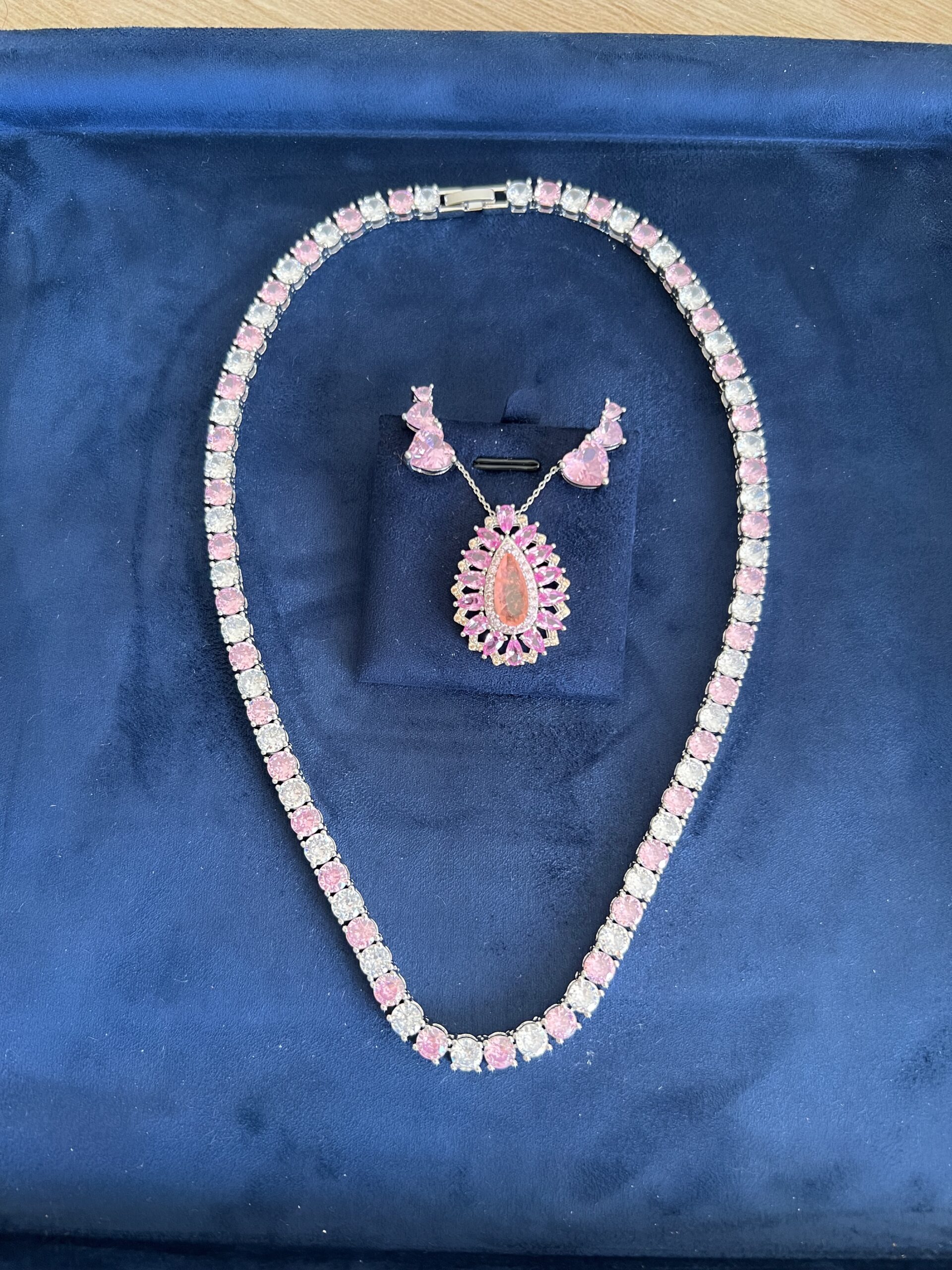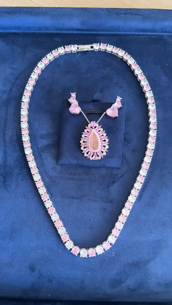 Colar Choker Riviera Mesclados com Zirconias Light Pink e Cristal Branco em 4mm Cravejado em zirconias brancas e Rosas de primeira linha Banhado em Ródio Branco