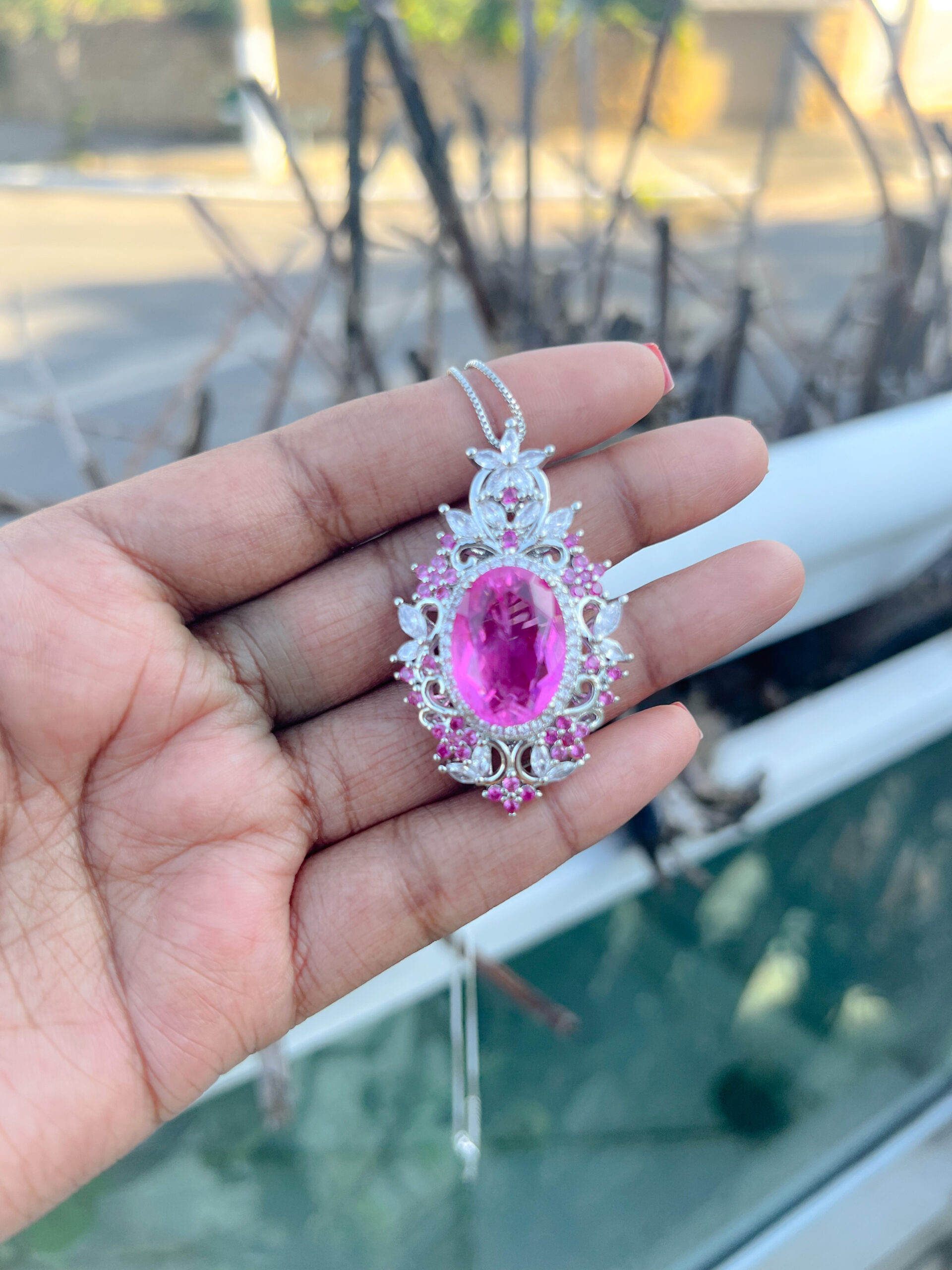 Colar todo Detalhado com zirconias Branca e Pink Barbie Fusion pedrarias de primeira linha Banhado em Rodio Branco